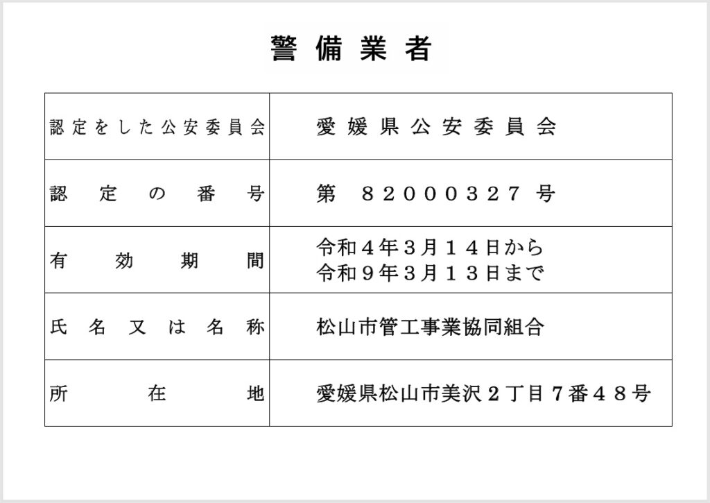 令和6年度4月1日従来認定証の廃止により、警備業法施行規則に規定する様式の「標識」を新たに作成の上、掲示する必要があります。
