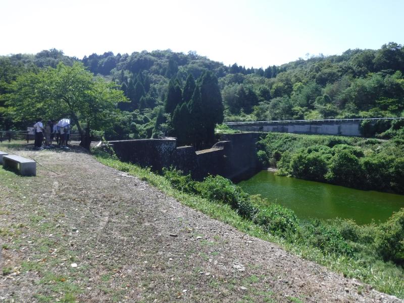 旧美歎水源地水道施設を管理されている美歎水源地保存会の方に案内していただき、貯水池に向かう道中では当時の鉄製配水管などを見学し、大正時代に貯水ダムとして建造されたダムの歴史や、現在は砂防堰堤として活用されていることなどを伺いました。